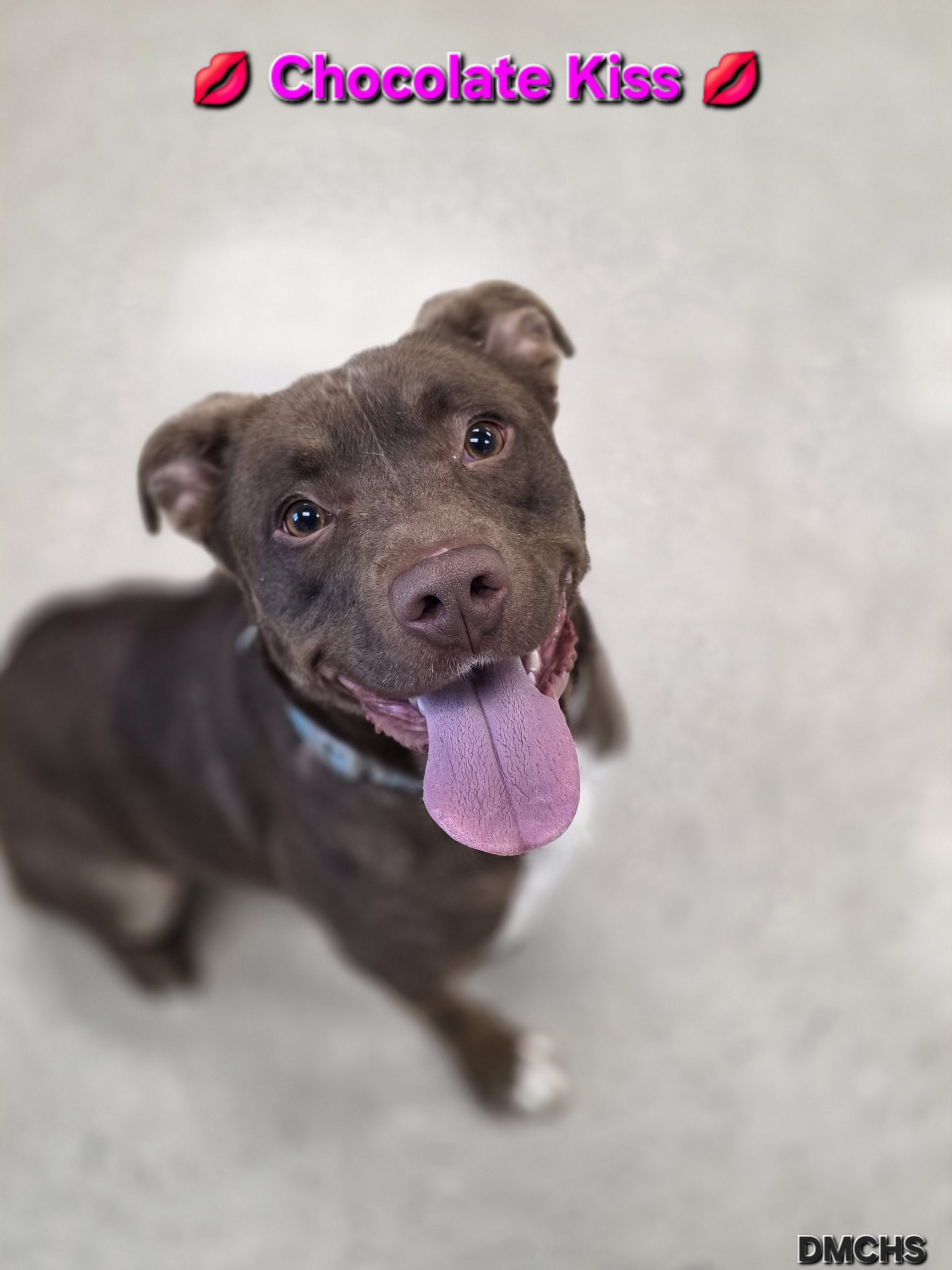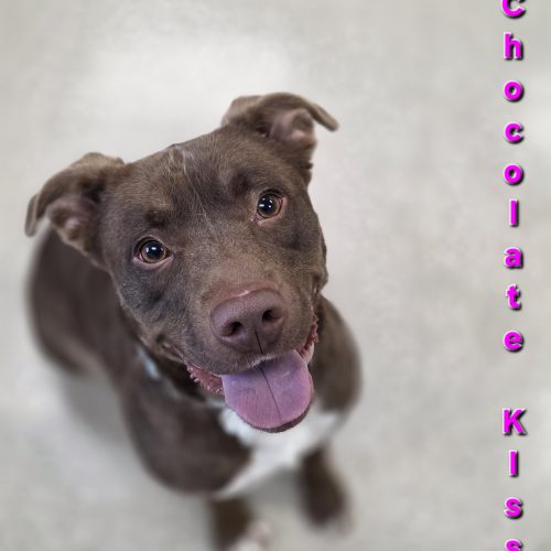 Chocolate Kiss is a 2 year old female brown Pit Bull Terrier mix. Chocolate Kiss is fun and loving, she loves her treats, going for walks on a leash and gives lots of kisses when she can. Chocolate Kiss is just a sweet treat!