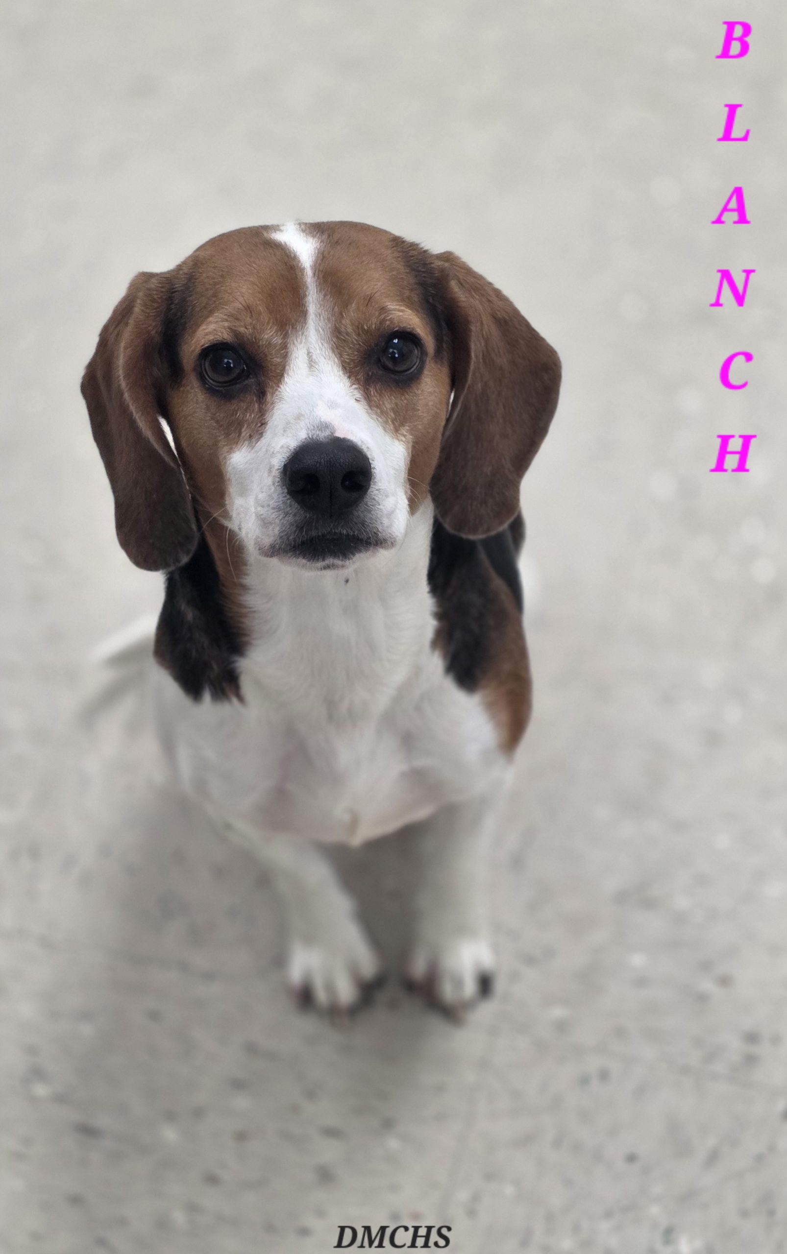 Blanch is a 1 year old female Beagle. Blanch is beautiful, has the normal Beagle howl, and loves to have people around her. She has fun doing zoomies, chewing on her chew toys and a little ball play too! She is smaller and super cute.