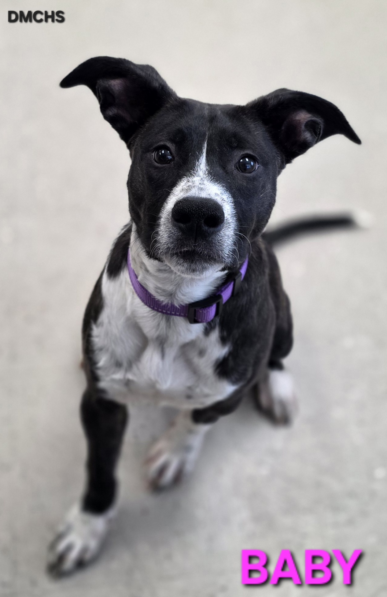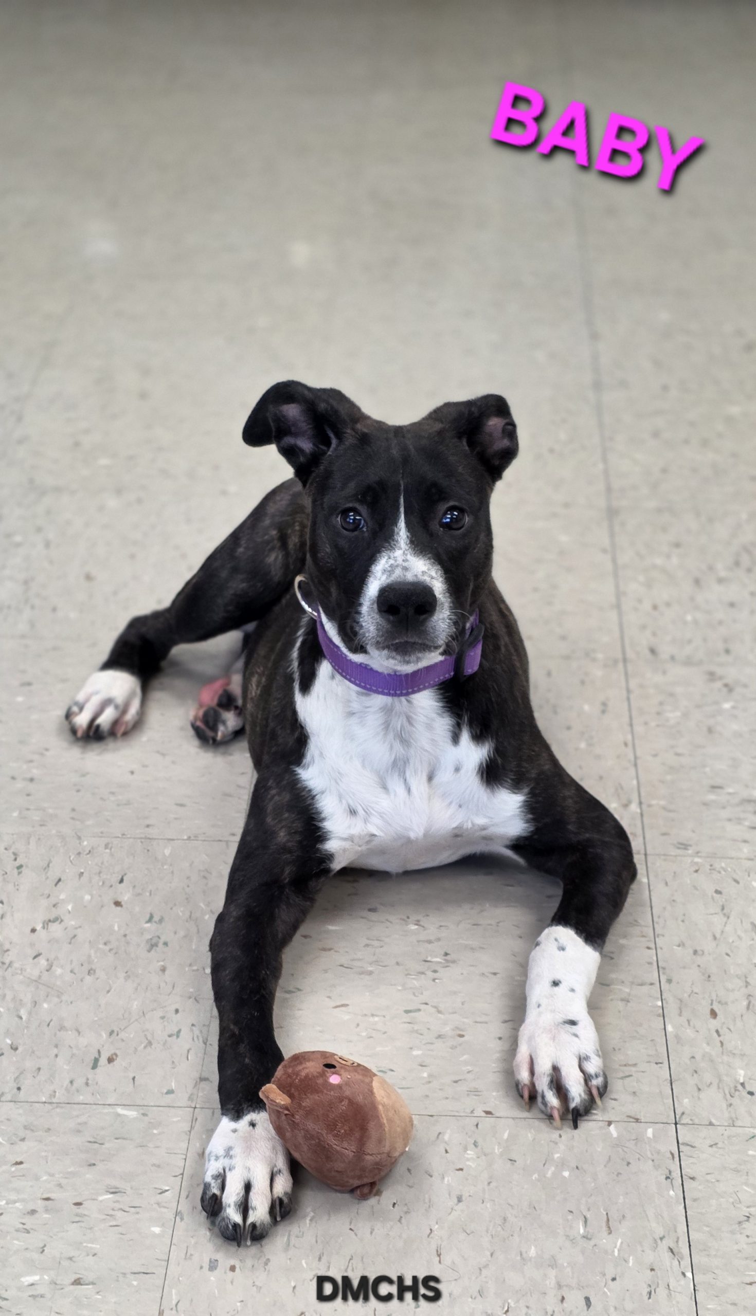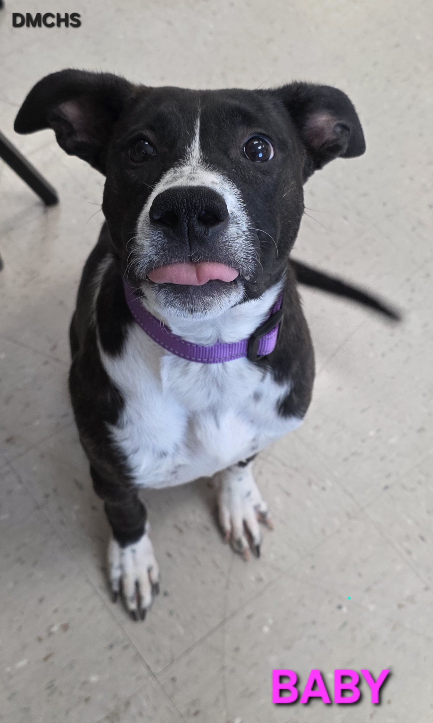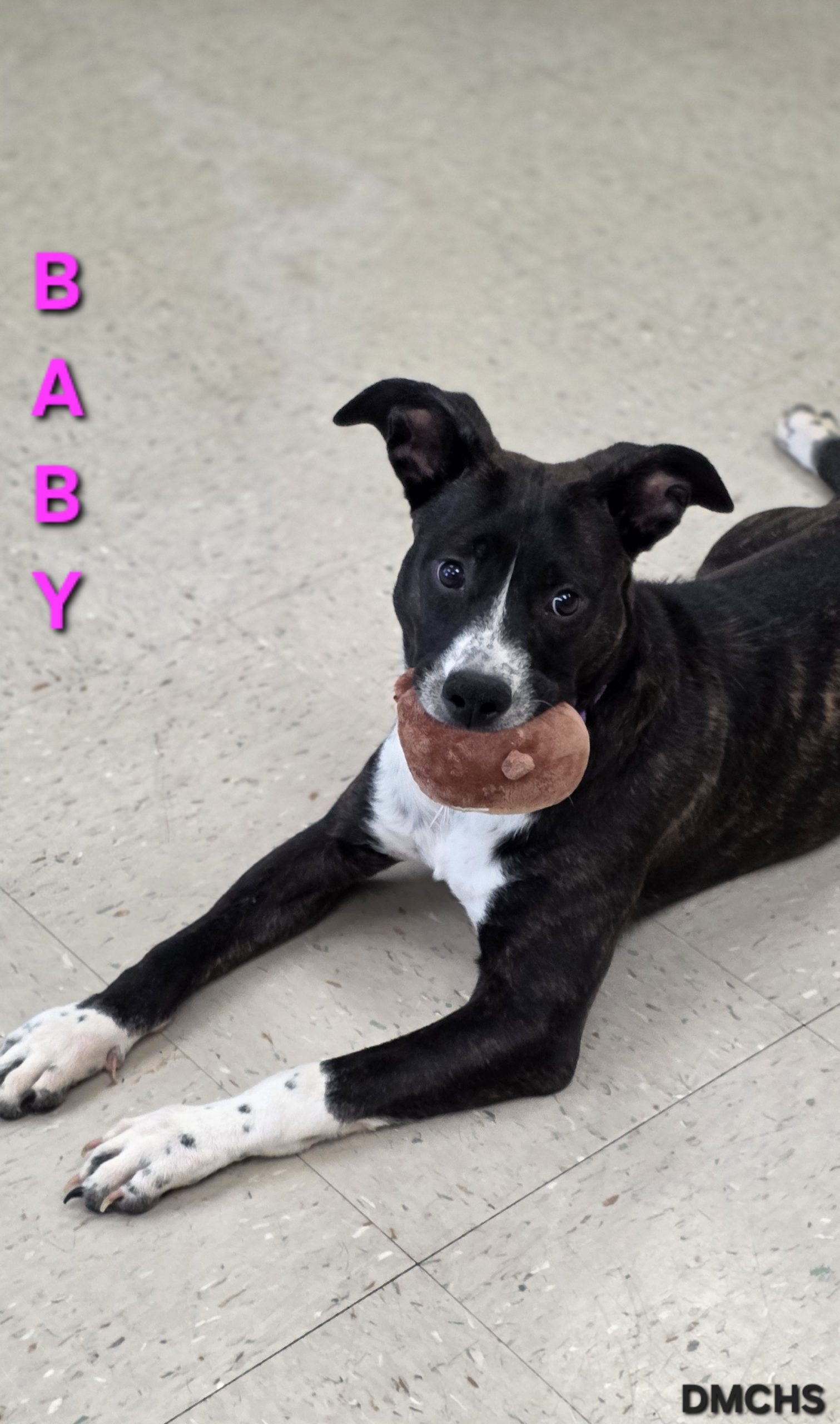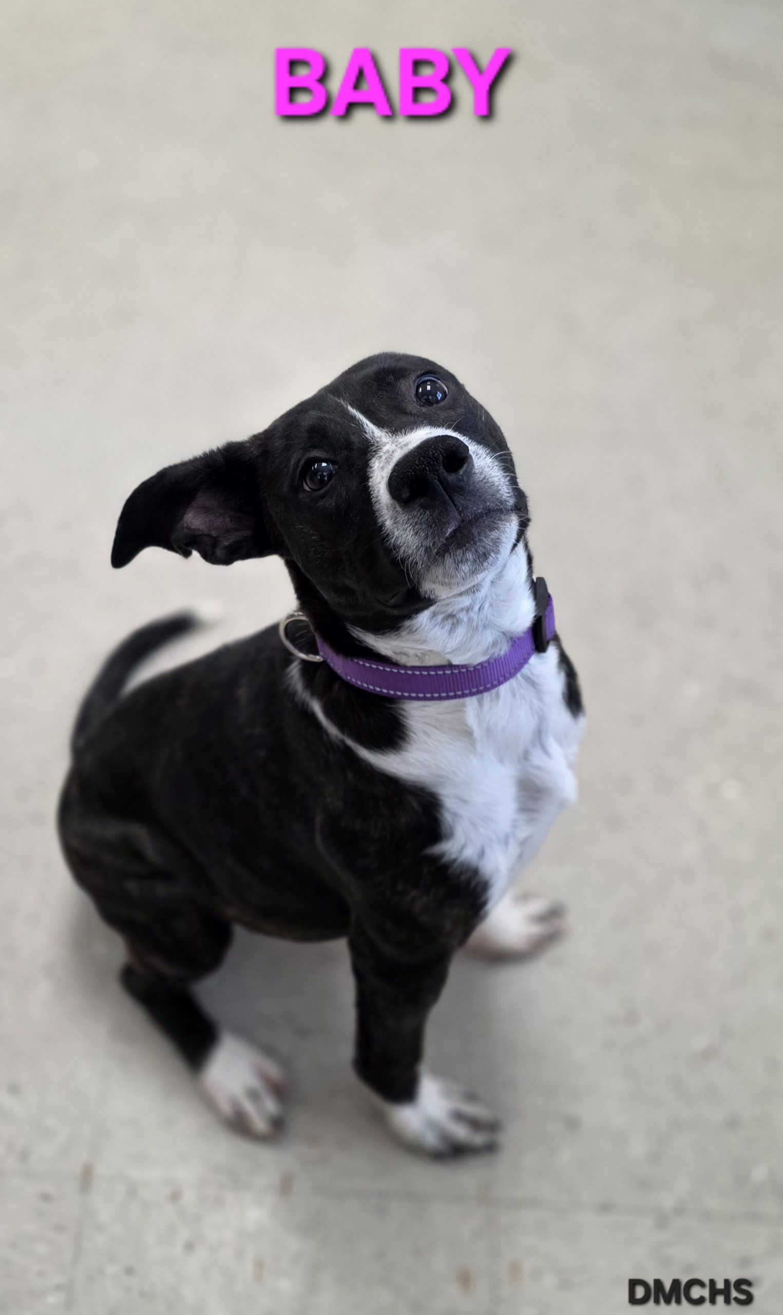 Baby is a 6 month old female Terrier mix. Baby is sweet, willing to learn what we are talking about, her head tilt makes you know this! Super fun gal that is looking to find her furever place! Doing better each day on leash and kennels better each day too.
