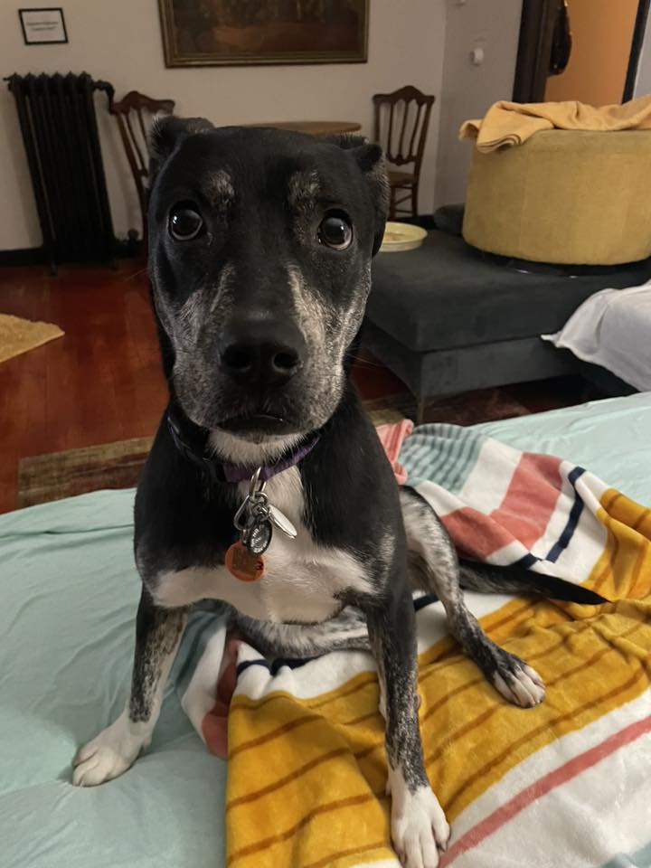 Emmie is a 1 year old female black with white Pit Bull Terrier. Emmie is happy, likes going for walks and enjoys her squeaky toys. She will need some basic training, she knows a little, and she is super cute to boot! She was born at the shelter, her mom is Gigi, she was adopted and then returned to us as the owners had moved and couldn't take her, so now she is grown looking for a new home again.