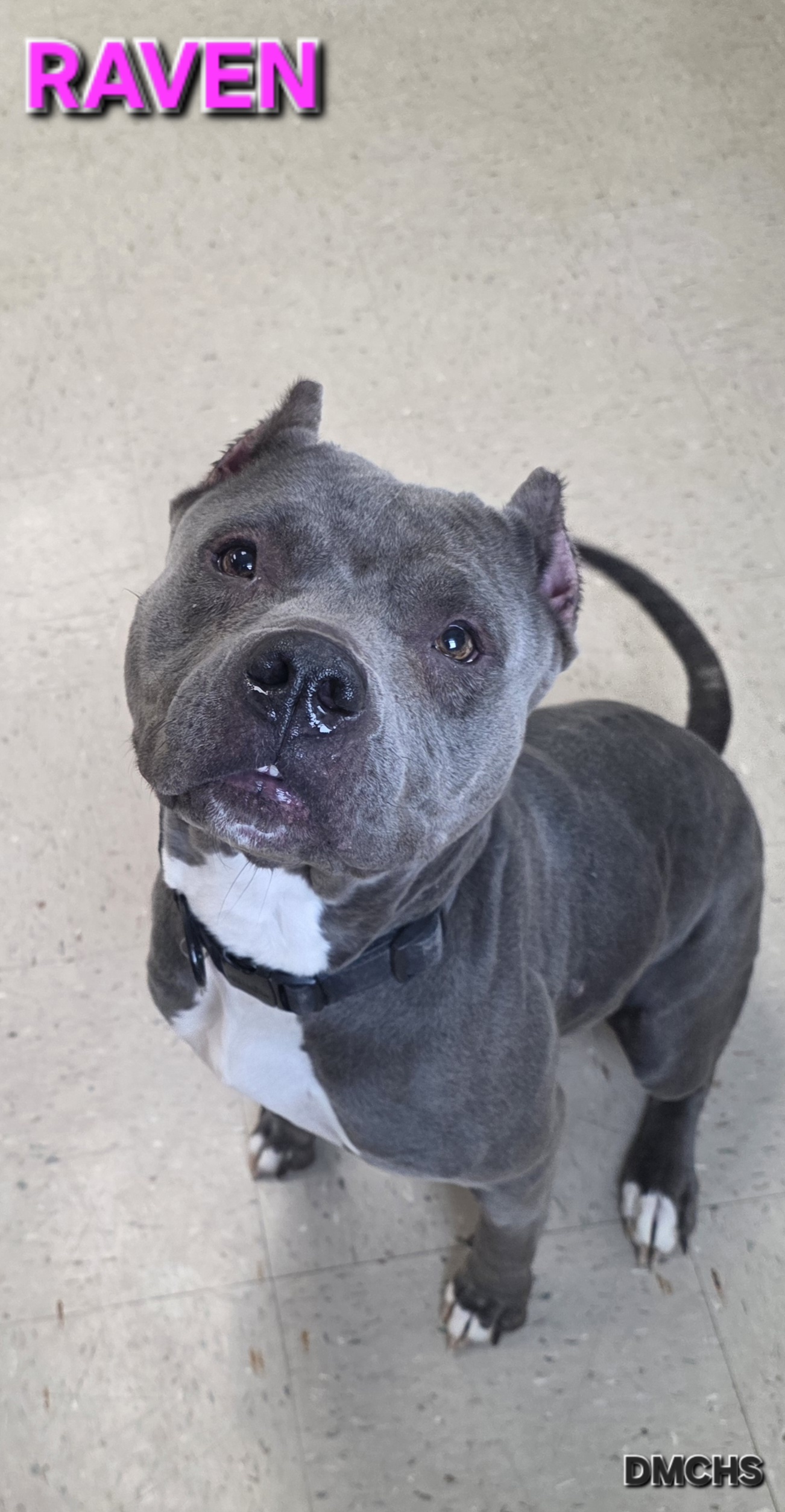 Raven is a 7 year old female Pit Bull Terrier. Raven is sweet, pretty and is ready to steal your heart. She has been more of a mom than anything in her life, so she is ready to be free of babies and live her dream life on a couch somewhere with no care sin the world!