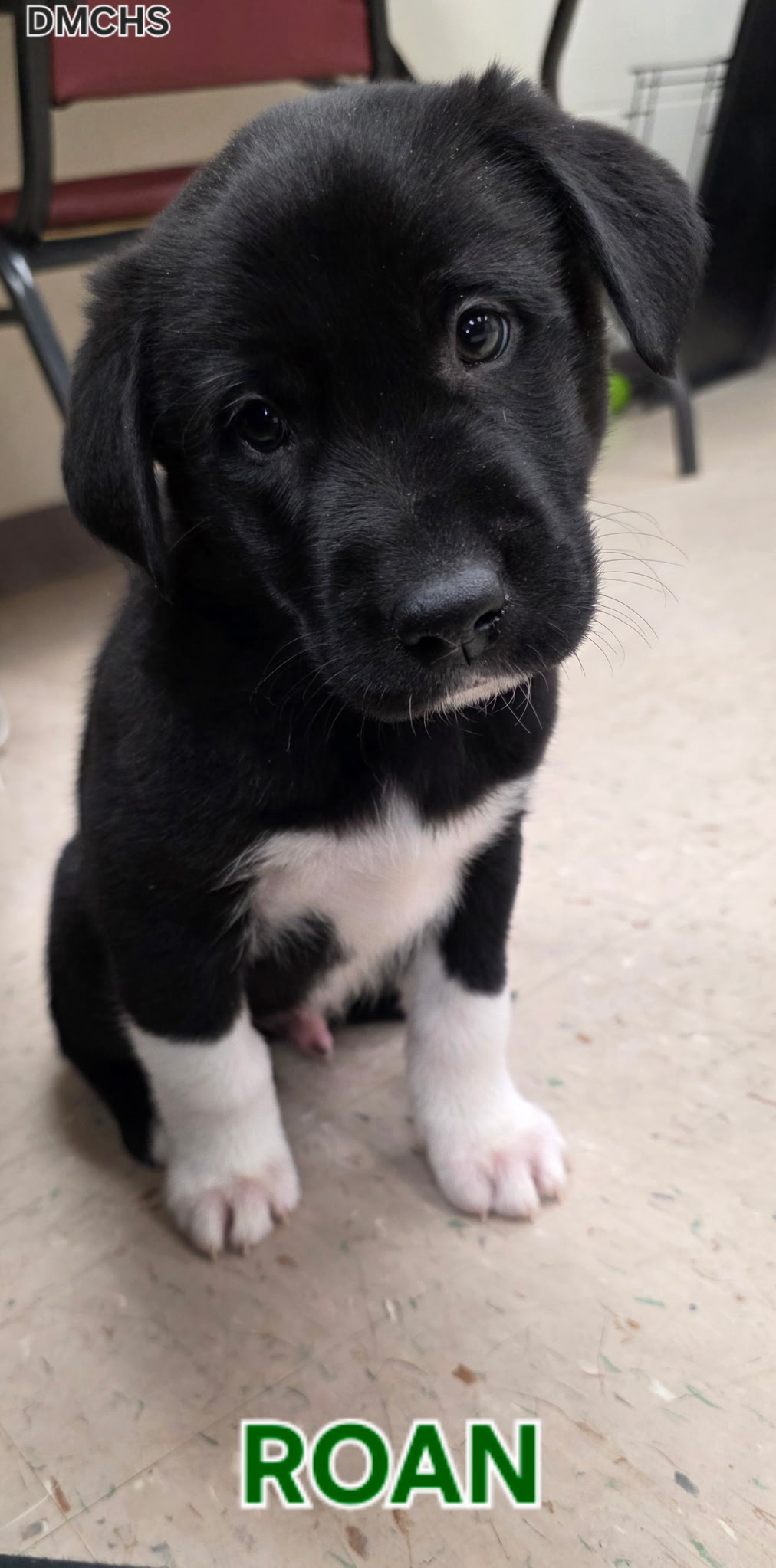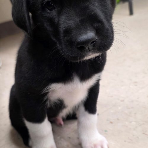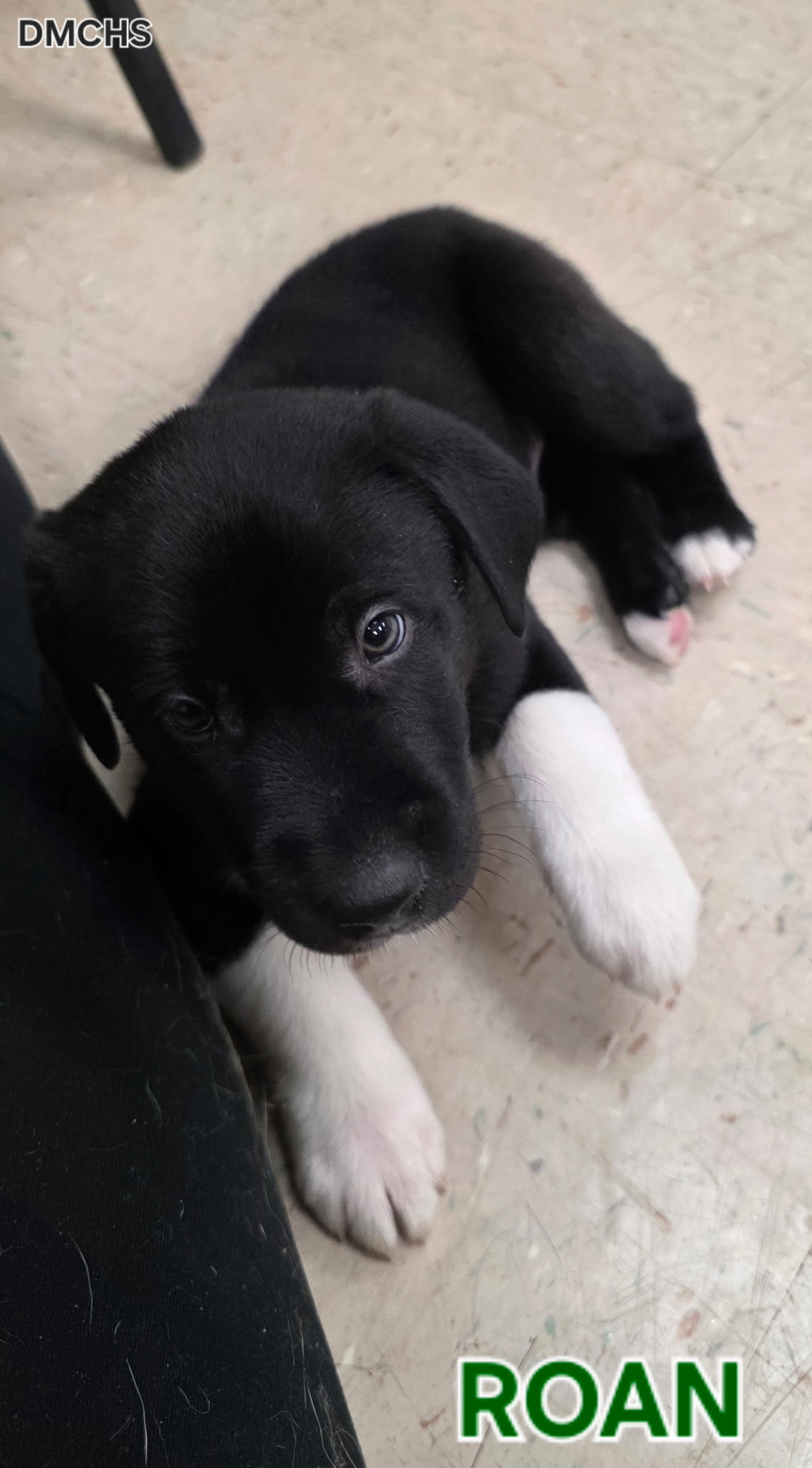 Roan is a 2 month old male Lab/Husky mix. Roan is a big boy, biggest of the litter, his socks are perfect for him, and he is super playful but really wants to be a squishy lover, nap time he is a snuggler. This big boy would love a home he can be active in and get some basic training.