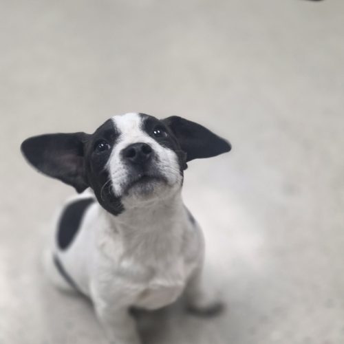 Toad is a 3 month old male Jack Russell/Frenchie/Beagle mix. Toad is playful and loves to talk to you, he seems more on the jack Russell side of his breeds, he is busy and loves playtime. Some basic training for this guy would be great.