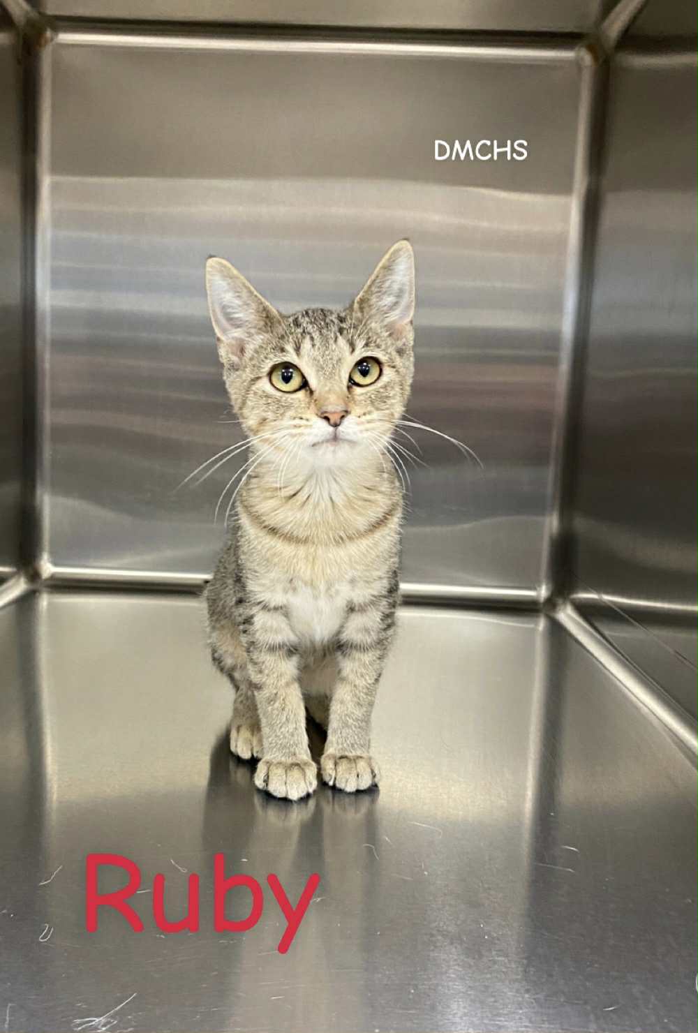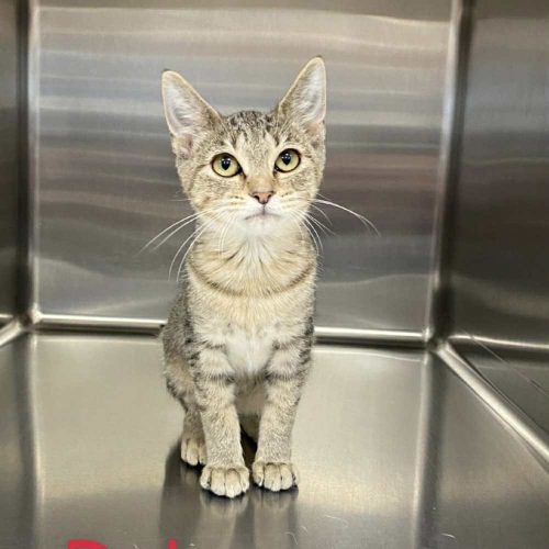 Ruby is a 3 month old female gray tabby kitten. Ruby loves to play hard and nap hard! She is quite the comedian too.
