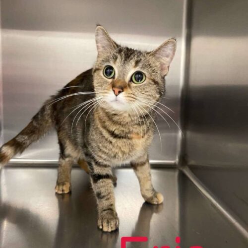 Eris is a 2 year old female torbie kitty. Eris is beautiful and she may know it! Her eyes will catch you quickly and then once she gets petted she will melt and love every second of it!