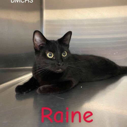 Raine is a 9 month old female black kitty. Raine is dinky and cute, she is really soft and loves to be petted and held. Rolly pollys all day when she is happy!