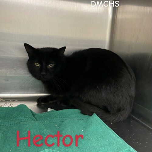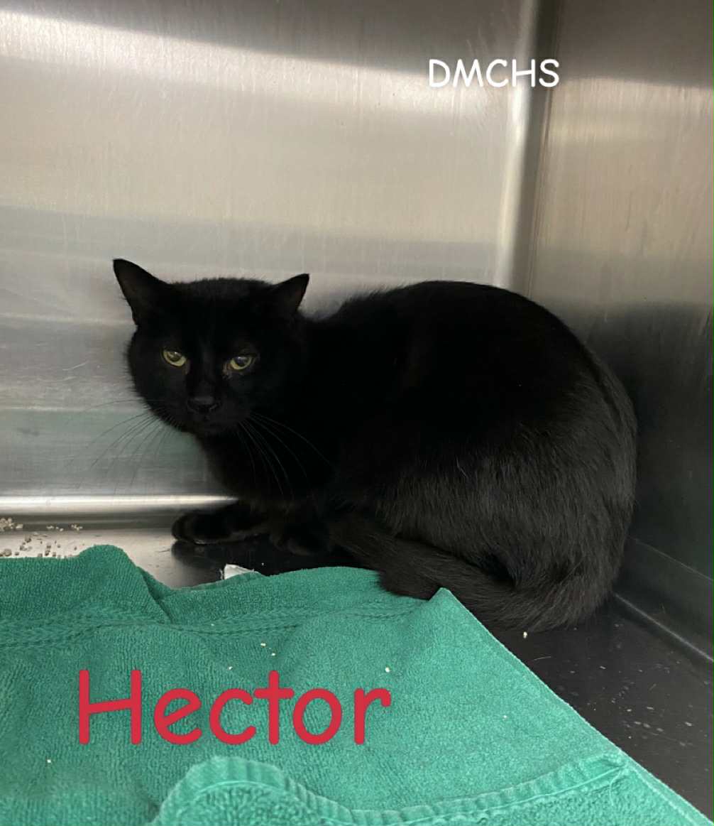 Hector is a 4 year old male black kitty. Hector is chill, not too much excites him, he is looking for a home he can be chill in and get pets when he wants. Treats are just ok... and toys are for uncool kitties. Looking out a window however is very entertaining!
