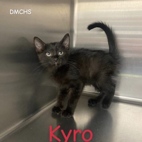 Kyro is a 2 month old male black kitten. Kyro has alot of fun playing, after he figures out the noises the ball makes is not going to hurt him! Then it is on!