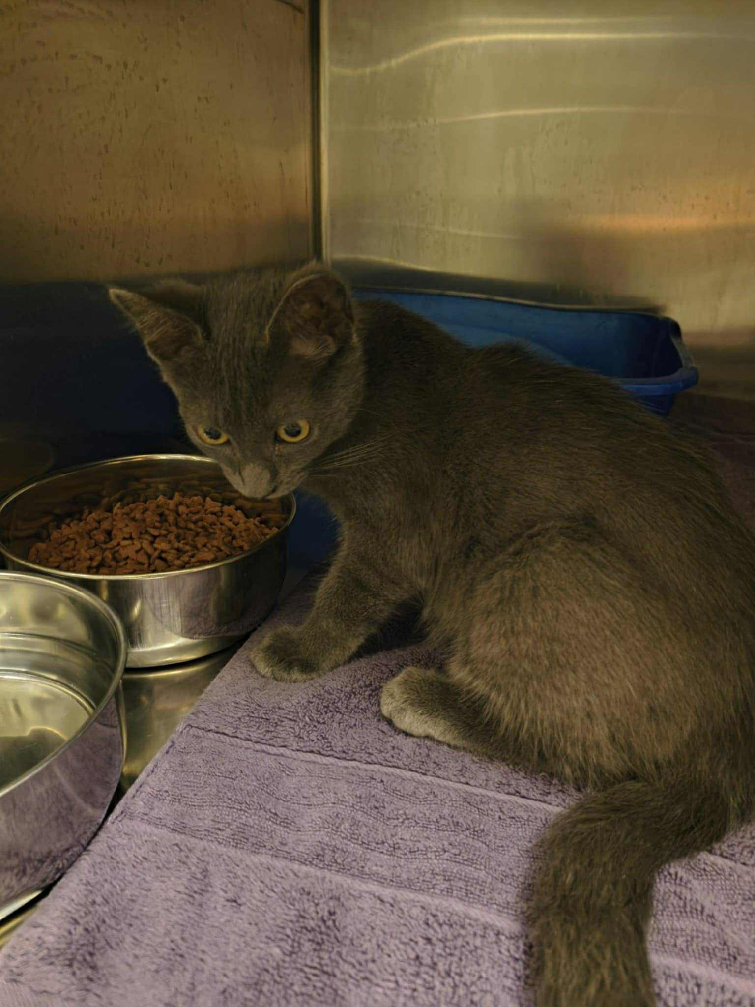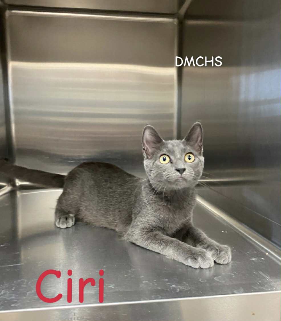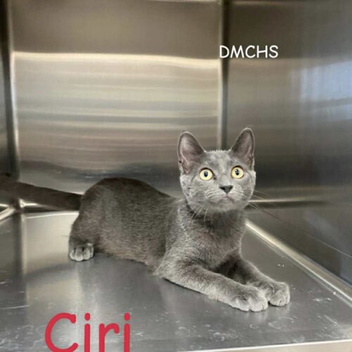 Ciri is a 5 month old female gray kitten. Ciri is a long, lanky lover, she will pull you in with her little paws and loves to be petted and play. Treats are like little mice waiting to be pounced on!