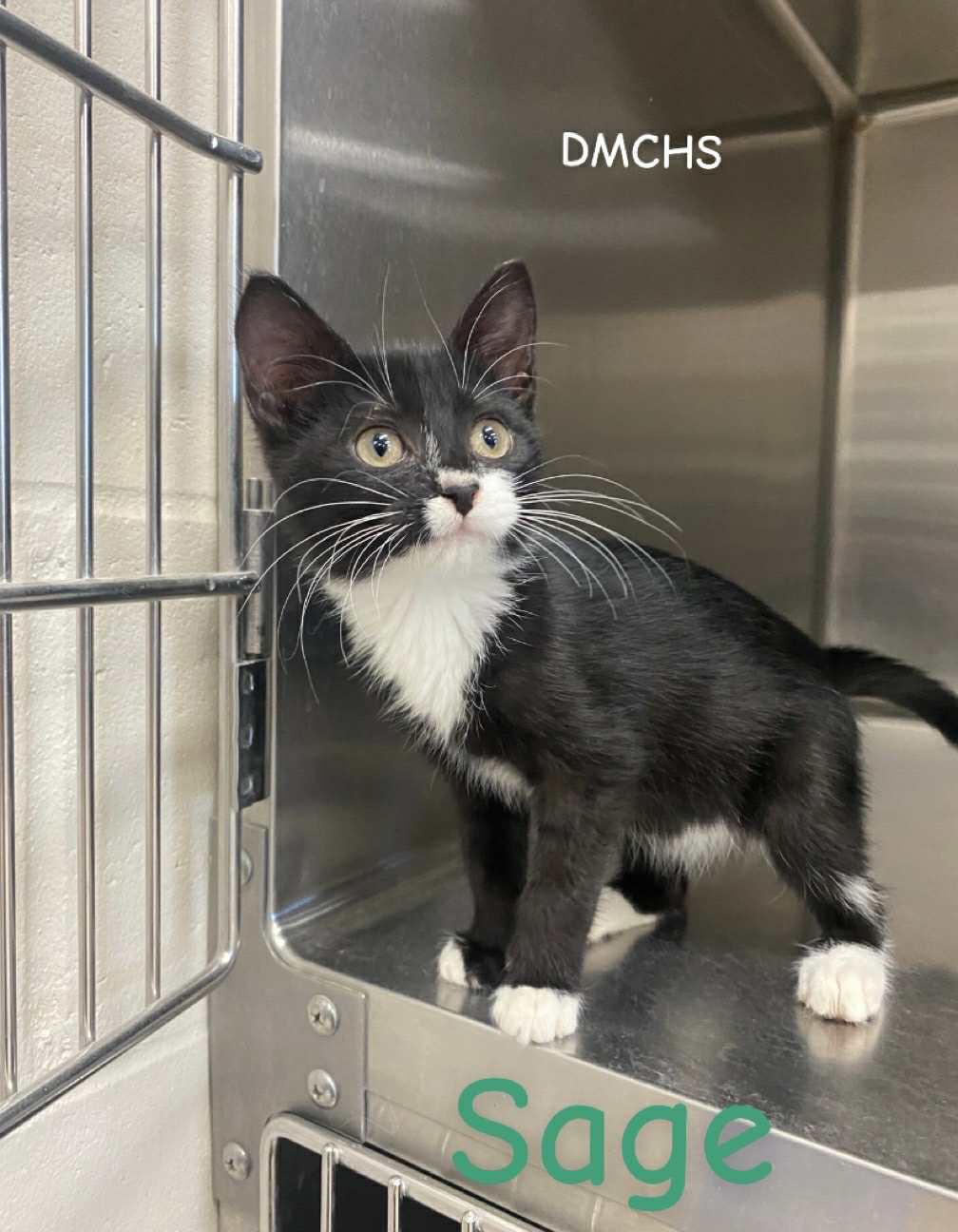 Sage is a 4 month old female tuxedo kitten. Sage is a dink, super cute and she loves everything!