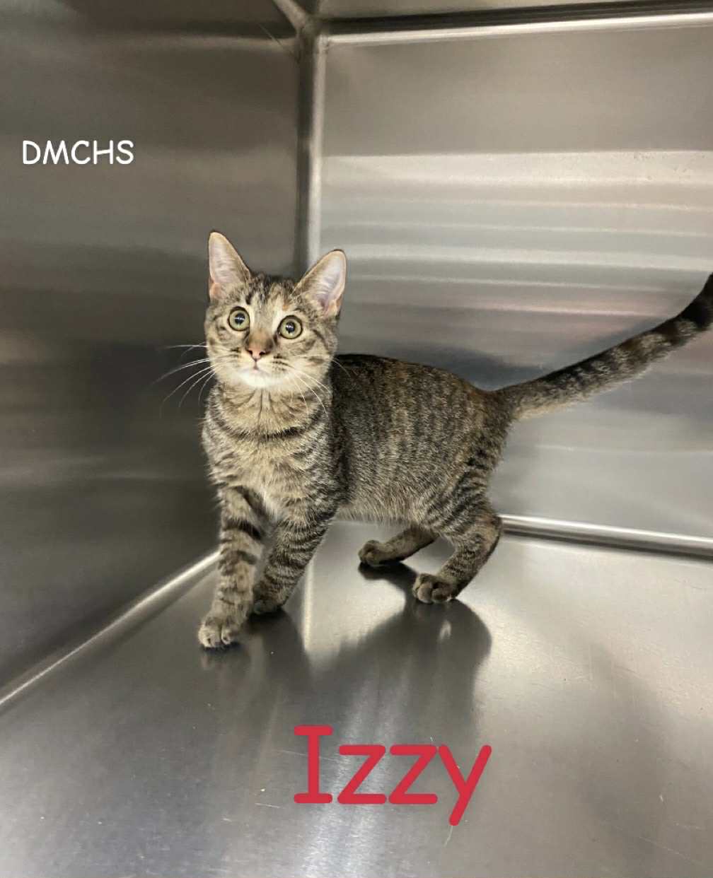 Izzy is a 2 month old female brown tabby kitten. Izzy is playful, cute and loves most everything, even the sound of the vacuum!