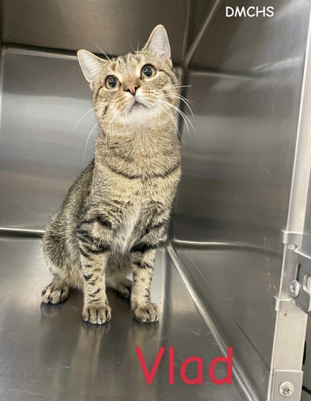 Vlad is a 2 year old male brown tabby kitty. Vlad loves most everything, he really likes to hold and hug you and not let you go!