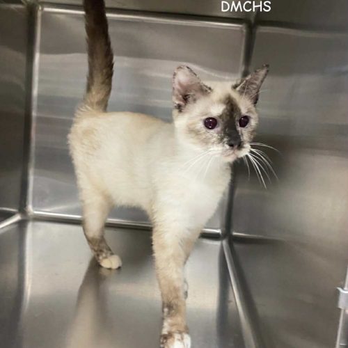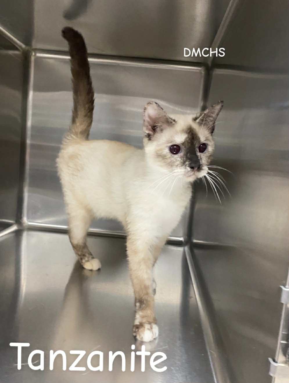Tanzanite is a 1 year old female Siamese mix. Tanzanite is playful, loves rolling around getting petted and treats are fun to pounce then eat.