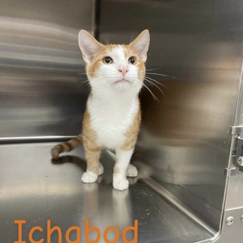 Ichabod is a 5 month old male orange and white kitty. Ichabod is so sweet and cute, loves to cuddle! He just wants to be in your arms loving you most of the time.