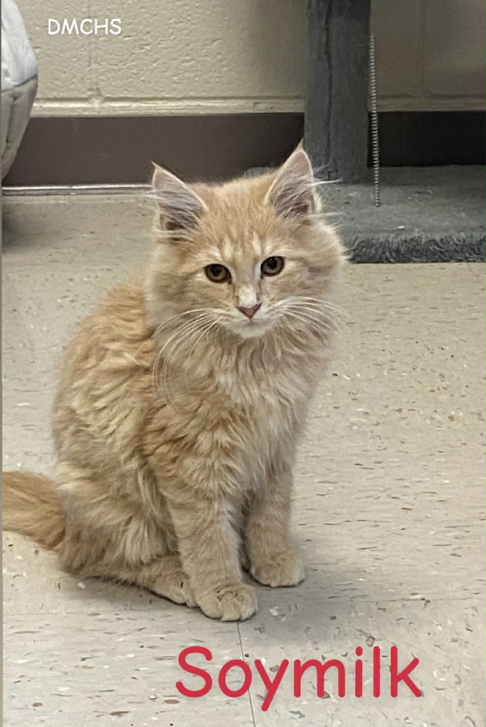 Soymilk is a 2 month old male long haired orange kitten. Soymilk is oh so sweet, his gaze into your eyes is all you need, he is super soft and loving and loves to give kisses.