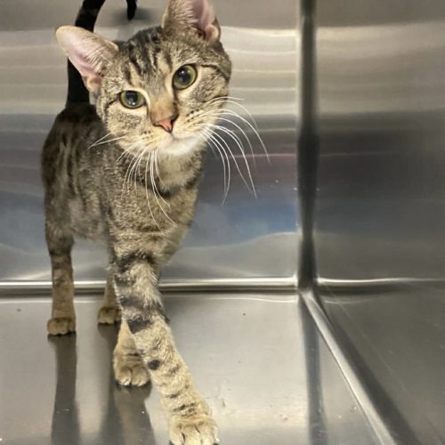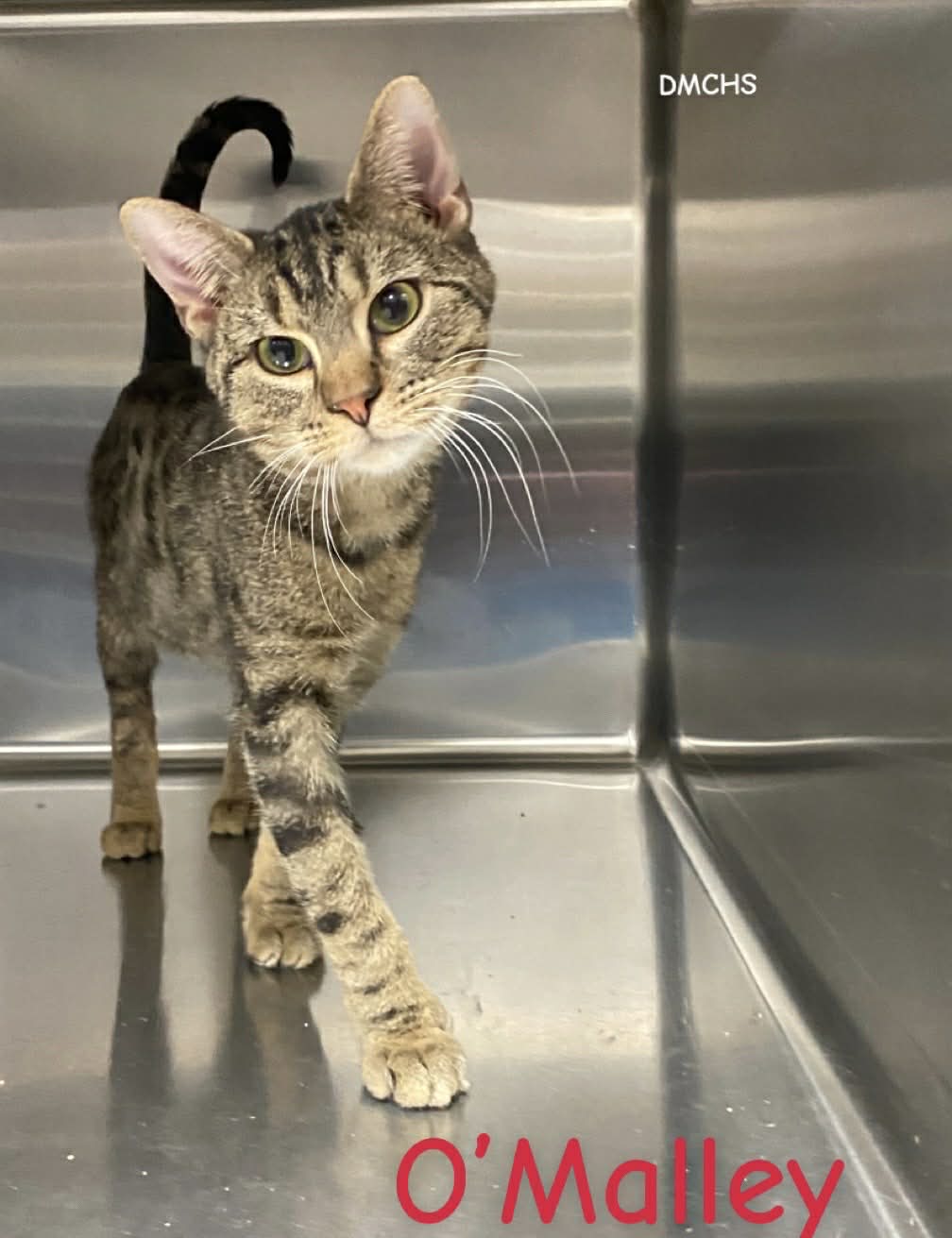 O'Malley is a 10 month old male brown tabby kitty. O'Malley is sweet and likes to be petted, play and nap. He walks the cat walk with pride and loves his belly rubbed! Fun times ahead for him to be pampered.