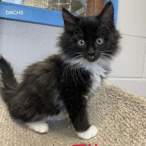 Elias is a 2 month old male tuxedo kitten. Elias is a fluffy ball of cuteness who loves to pounce around and loves to be held and loved on.