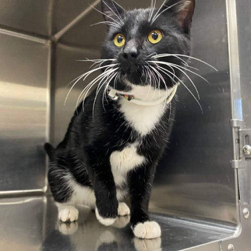 Harvey is a 4 year old male tuxedo kitty. Harvey is dressed for success, he is handsome and he knows it, somewhat playful when he gets in the mood, but laying there patting at his toys is his fav!