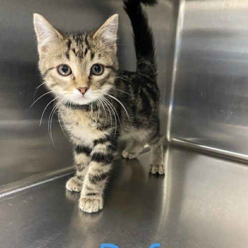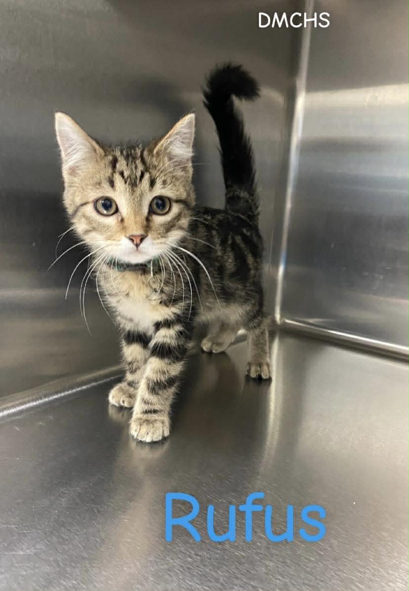 Rufus is a 3 month old male brown tabby kitten. Rufus is super cute with some cute markings, he is also picture perfect when he is sitting in his kennel watching for you.