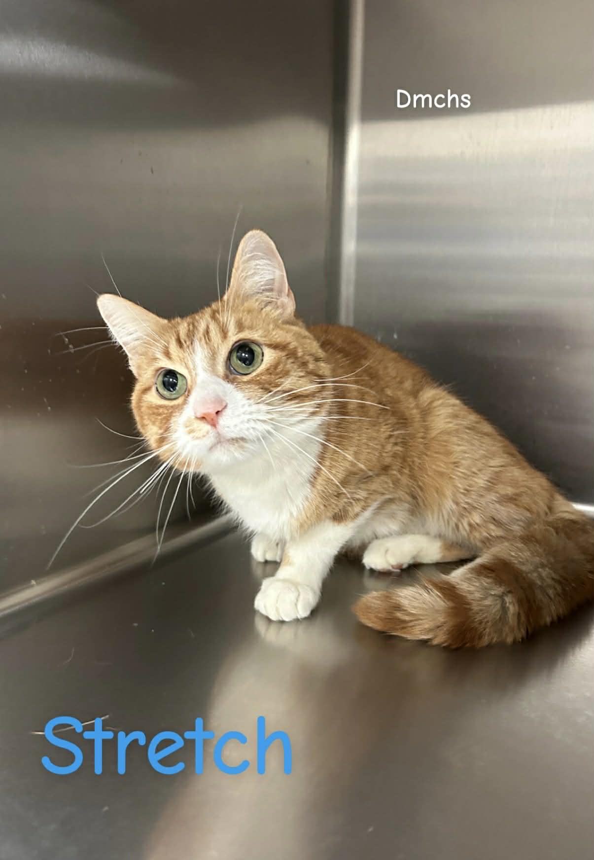 Stretch is a 5 year old male orange and white kitty. Stretch is sweet, cute and is ready to be petted and loved on everyday.