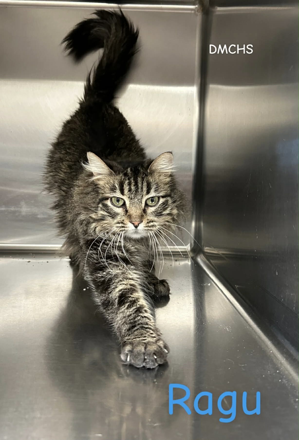 Ragu is a 2 year old female tabby kitty. Ragu is a sweet, beautiful gal, loves to be petted and has a rough go round till she found us, didn't hurt her sparkle, she still wants all the love she can get with all the pets she can get.