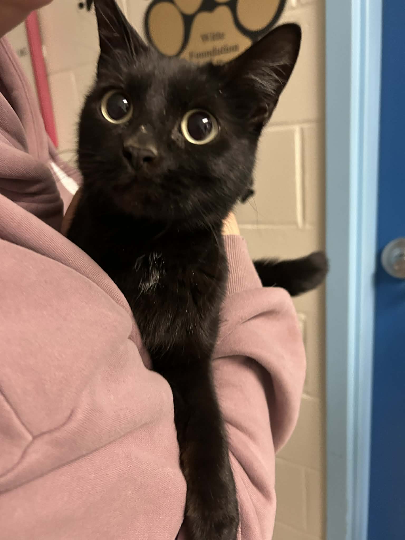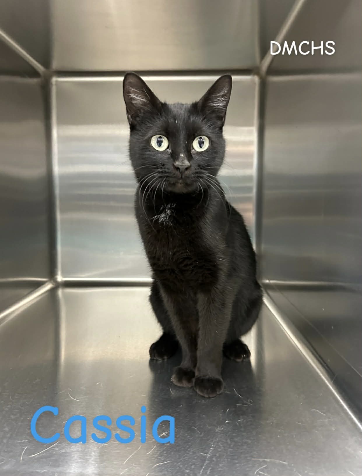 Cassia is a 1 year old female black kitty. Cassia is soft and loving, she likes to play with her toys and to be loved on.