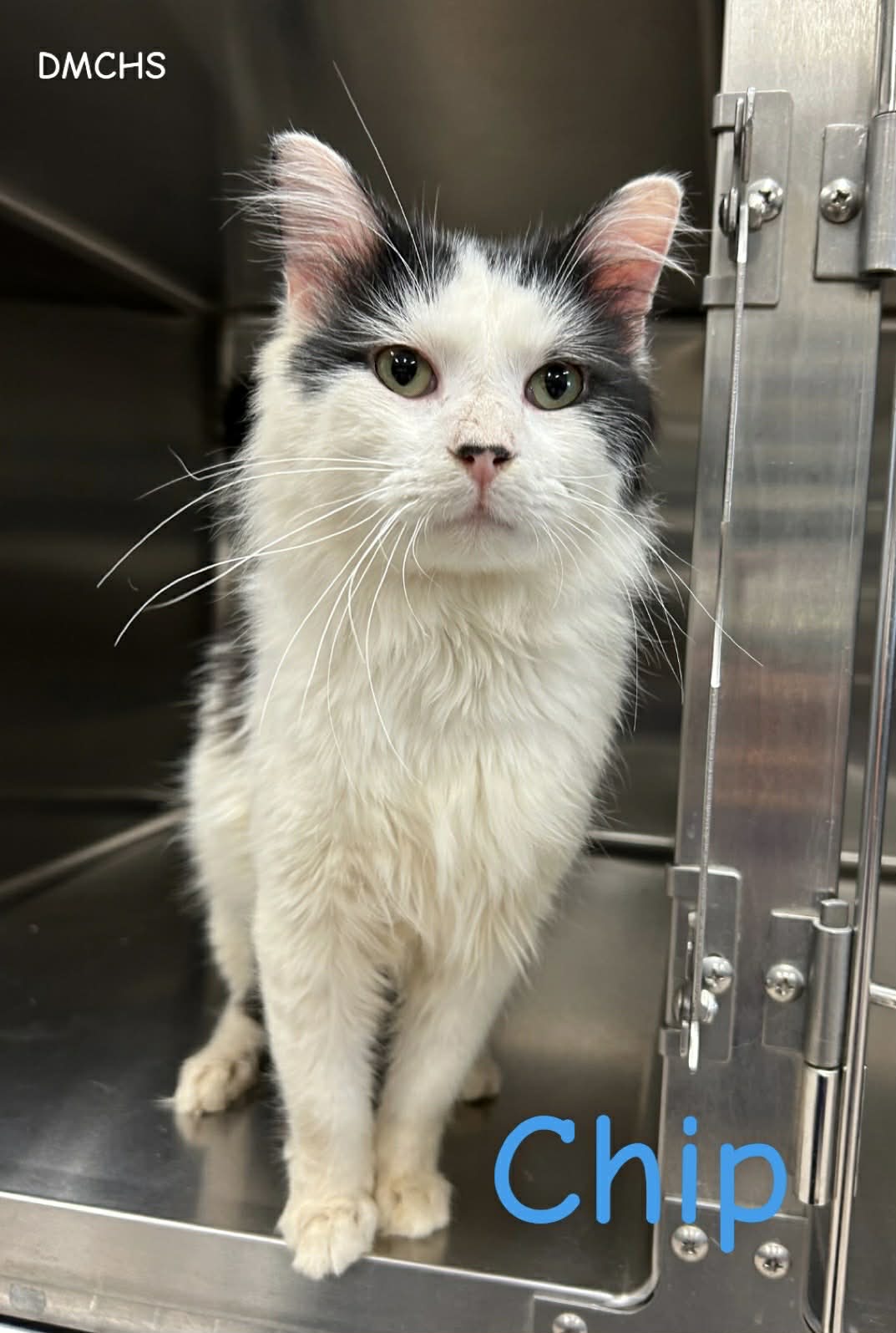 Chip is a 2 year old male tuxedo kitty. Chip is a lover, not a fighter, he came from the streets, looking rough but oh so sweet. This handsome guy is happy to be with humans and not out in the cold, scary world he was in. He loves to play, but being loved on his is favorite!