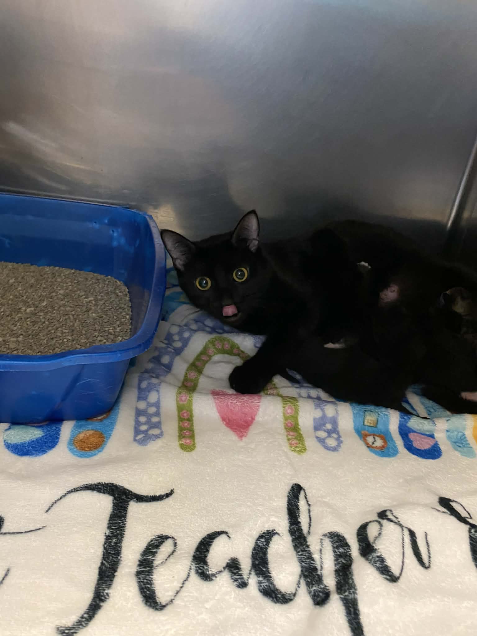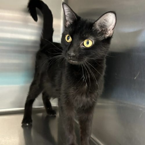 Kat is a 1 year old female black kitty. Kat came to us a mom and had that business to attend, but now she is ready to have a home to call her own and only care for herself with the help of her new servant. She is playful and learning to have more fun each day.