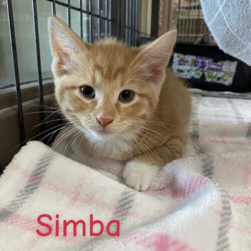Simba is a 2 month old male orange and white kitten. Simba is trying to be his brave self and live up to his name, this king is cute, curious and is ready to find his new parents!
