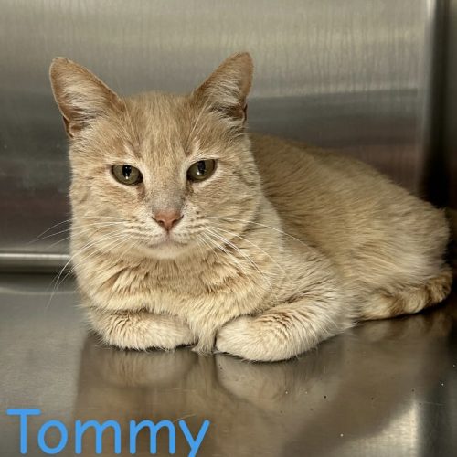 Tommy is a 7 year old male orange kitty. Tommy is sweet, soft and likes to be loved on, it is loud here and he is not to excited about that, but he is getting used to it. He has lived with other kitties, so no issues there.